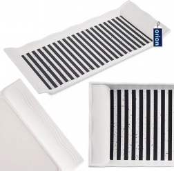 Osrednja površina s črno-belimi črtami povečuje oprijem in preprečuje premikanje skodelic in krožničkov med prenašanjem.