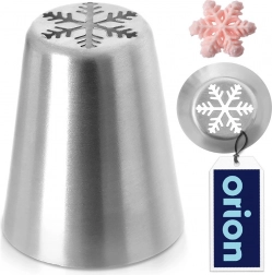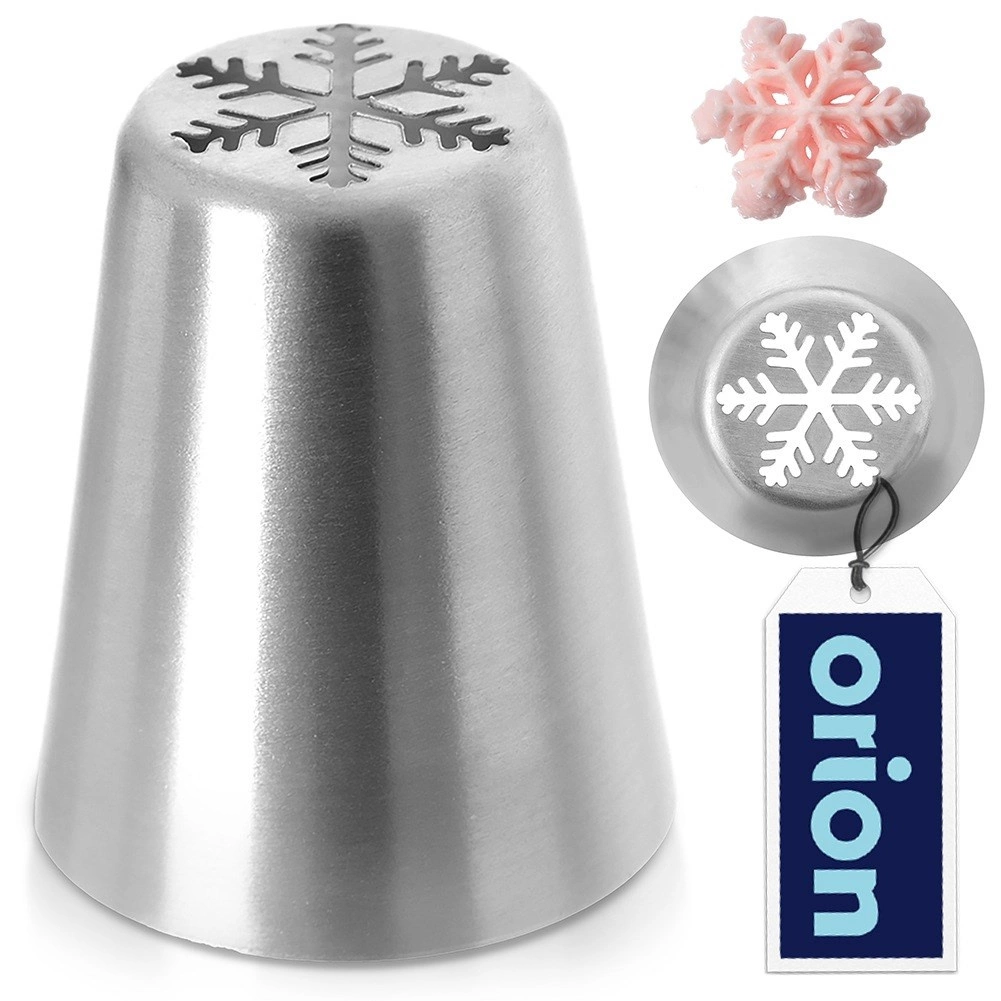 Ta ruska nastavka s posebnim izrezom z enim pritiskom ustvari čudovite motivi snežink iz krem in prelivov. Zahvaljujoč robustni izvedbi iz nerjavečega jekla je nastavka trpežna, enostavna za čiščenje in dolgoročno ohranja obliko ter natančnost reza.