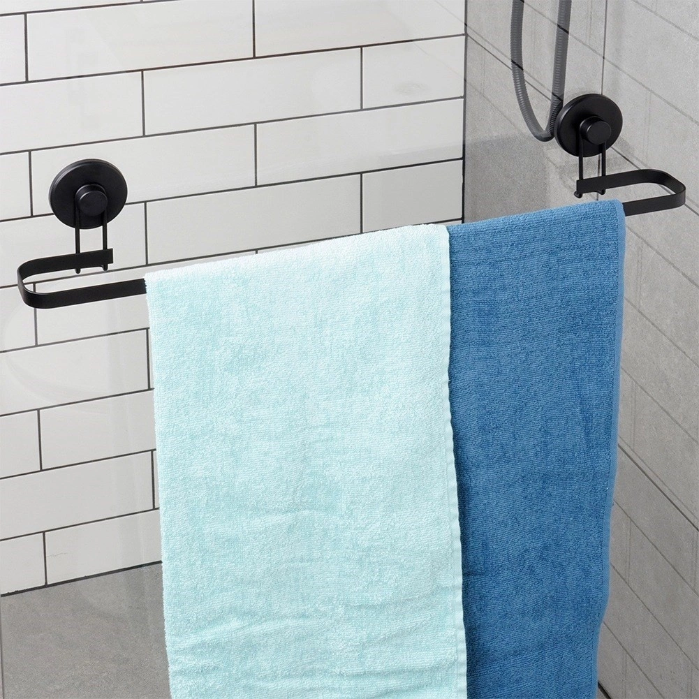 Ta minimalistični nosilec za brisače v mat črni barvi združuje čist dizajn in vsakodnevno funkcionalnost. Z dvema velikima priseskoma ga hitro in enostavno pritrdite na gladke površine, kot sta steklo ali ploščice, brez vrtanja – vaše stene tako ostanejo nepoškodovane.