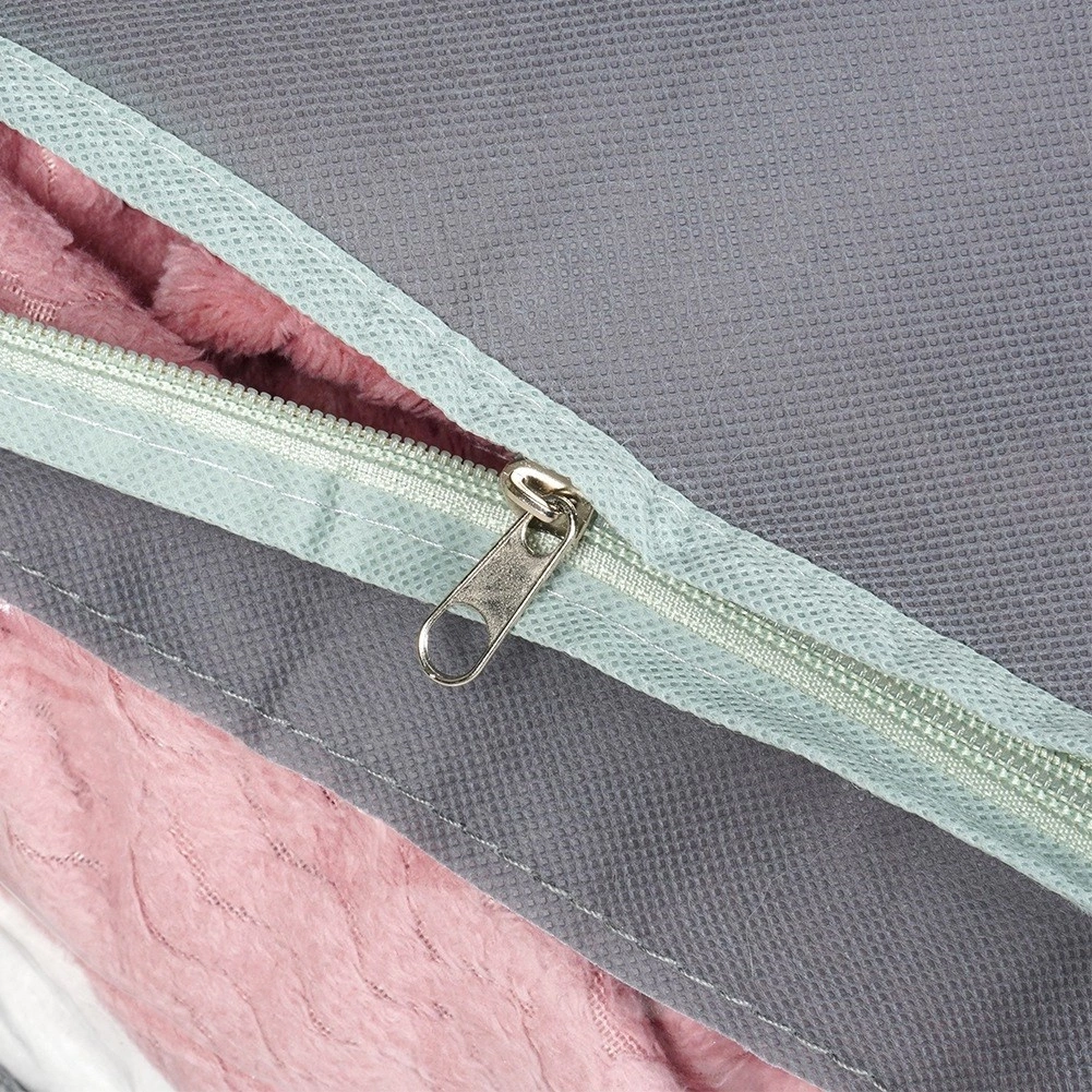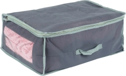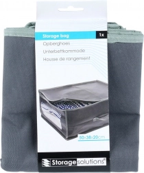 Vreča ima kompaktne mere 50 × 38 × 20 cm in prostornino 38 l, zato se brez težav prilega na police, zgornje police in v prostor pod posteljo. Zahvaljujoč trdnemu ročaju jo zlahka izvlečete tudi z manj dostopnih mest. Idealna rešitev za organizacijo, zaščito in prihranek prostora v gospodinjstvu.