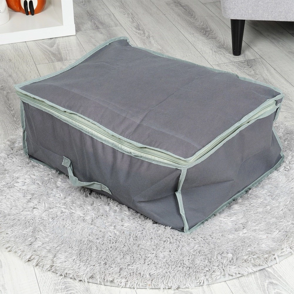 Poskrbite za red v omari in zaščitite svoje tekstilije. Ta shranjevalna vreča iz trpežne sive tkanine je odlična za shranjevanje posteljnine, odej, blazin in sezonskih oblačil. Praktično prozorno okence omogoča hiter pregled vsebine brez odpiranja, dvojna zadrga pa zagotavlja enostaven dostop in zanesljivo zapiranje.