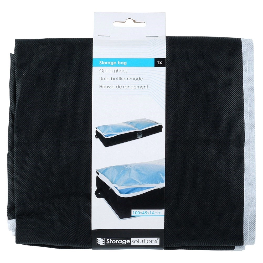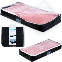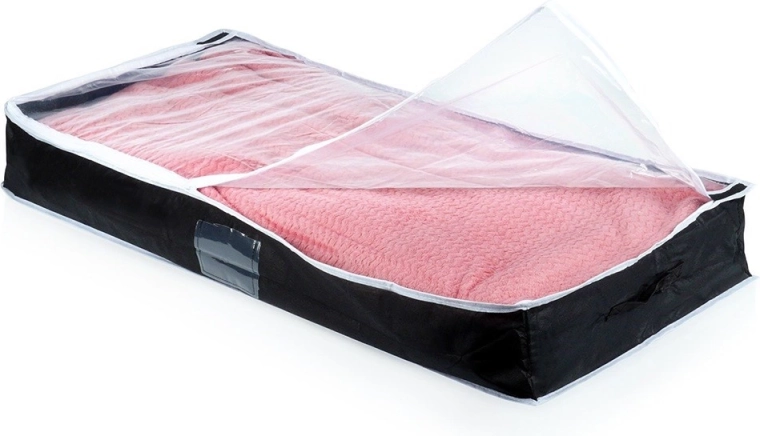 Vreča je opremljena s čvrsto dvosmerno zadrgo v kontrastni beli barvi za hiter dostop ter stranskim ročajem za enostavno izvlečenje izpod postelje ali z zgornjih polic. Minimalistična zasnova in raven profil prihranita prostor ter pomagata pametno organizirati dom.
