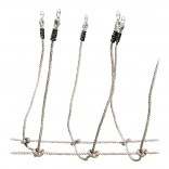 Kovinska ušesa na koncih vrvi omogočajo enostavno in prilagodljivo pritrditev med dvema trdnima točkama.