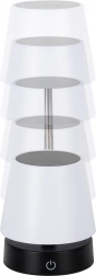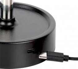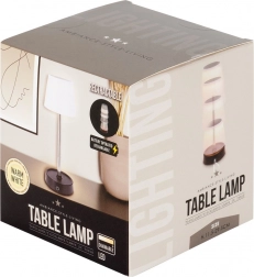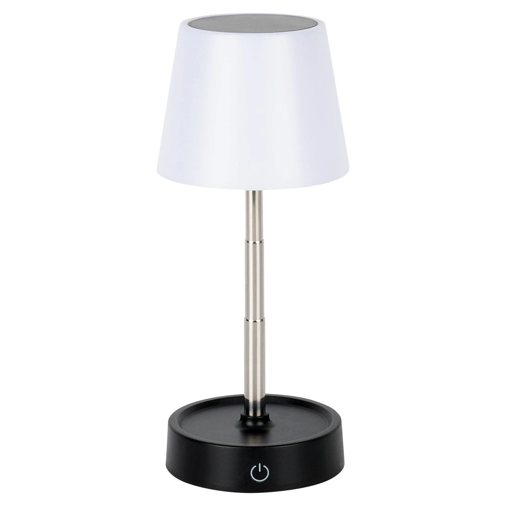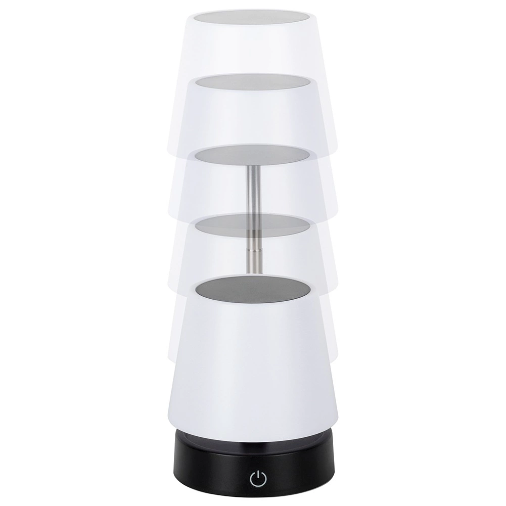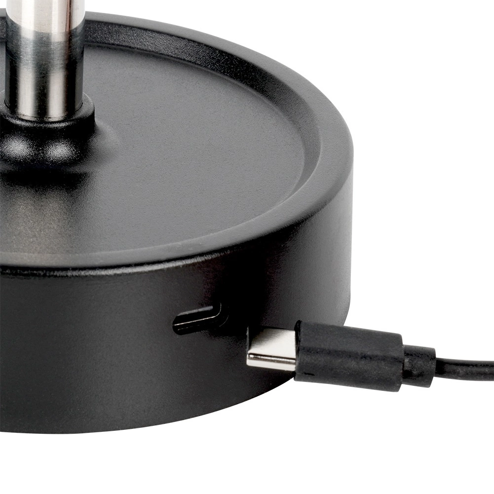 Upravljanje na dotik in gladko zatemnjevanje omogočata natančno nastavitev svetlobe po vaših željah. Vgrajena baterija z USB‑C polnjenjem zagotavlja udobno brezžično uporabo brez motečih kablov. Stabilna kovinska konstrukcija, črna osnova s filcnimi podlogami in bel senčnik s premerom 10,5 cm poudarjajo sodoben videz svetilke.