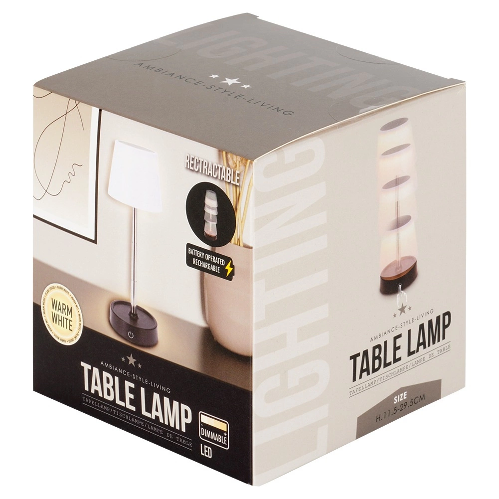 Ta dekorativna namizna LED svetilka izstopa s čistim dizajnom in vsestransko uporabo. Zahvaljujoč nastavljivi višini 11–29,5 cm in kompaktnih merah se zlahka prilagodi delovnim in sprostitvenim kotičkom. Topla bela svetloba ustvari prijetno vzdušje v spalnici, dnevni sobi ali jedilnici.