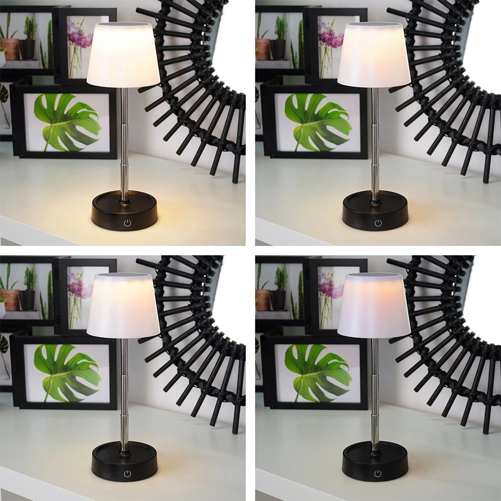 Teleskopska zasnova omogoča hitro prilagoditev višine svetilke mestu uporabe – na nočni omarici, pisalni mizi ali polici.
