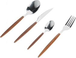 Ta brezčasni set pribora bo vaši mizi dodal klasično eleganco in sodoben pridih. Bleščeče glavice iz nerjavnega jekla v kombinaciji s toplim lesenim dekorjem ročajev lepo izstopajo pri vsakem klasičnem ali modernem jedilnem servisu.