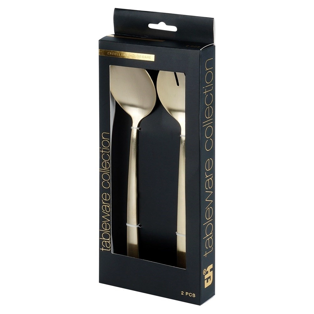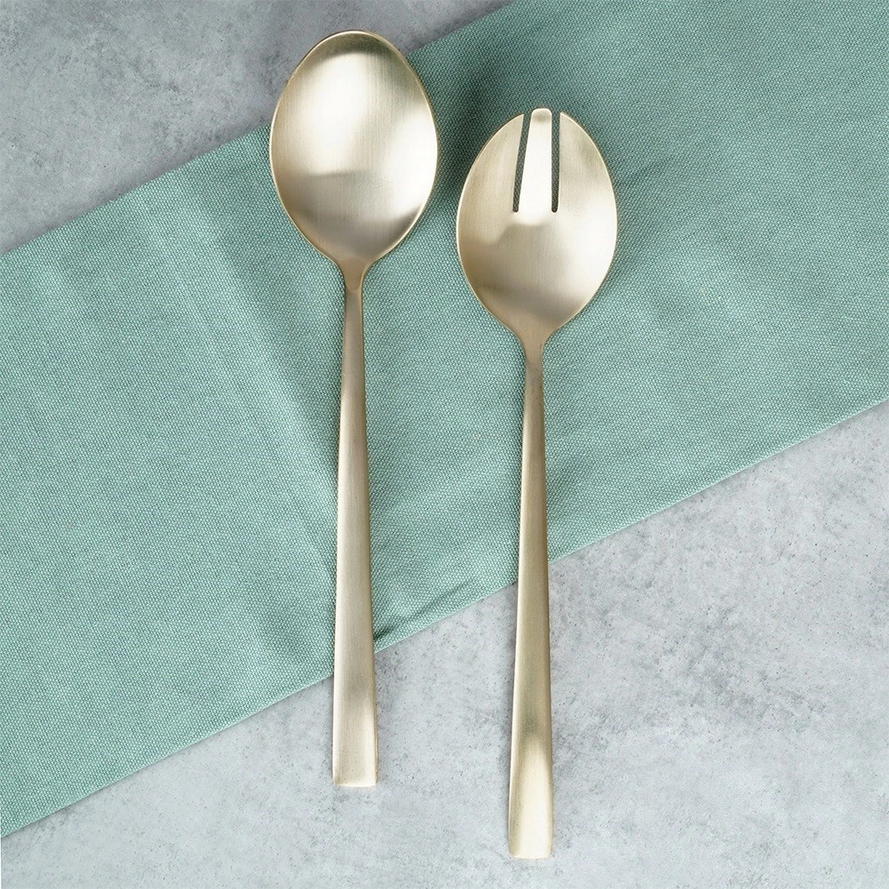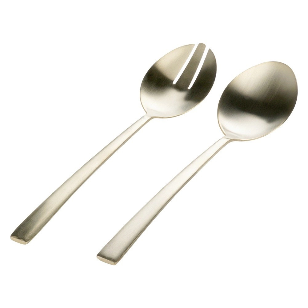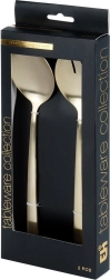 Set 2 kosov stilskih solatnih žlic v priljubljeni zlati izvedbi vašemu stolu doda pridih elegance. Satensko brušena površina združuje nežen lesk z diskretnim matom in ustvarja moderen videz, primeren za vsak interier.
