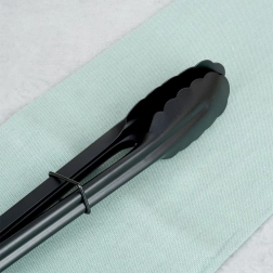 Univerzalne kuhinjske klešče v sodobni črni izvedbi so nepogrešljiv pomočnik pri cvrtju, pečenju in žaru. Robusna konstrukcija iz nerjavnega jekla zagotavlja dolgo življenjsko dobo in higieno, profilirani konci pa zanesljivo primejo meso, zelenjavo in pecivo brez drsenja.