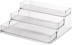 Ta univerzalna trostopenjska organizacijska polica iz prozorne plastike takoj izboljša red in vidnost v vaši kuhinji, kopalnici ali shrambi. Prozoren material omogoča hitro najti potrebno sestavino ali kozmetiko, medtem ko stopničasta konstrukcija prihrani prostor in poveča kapaciteto.