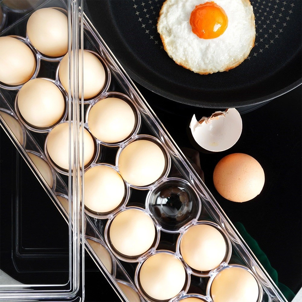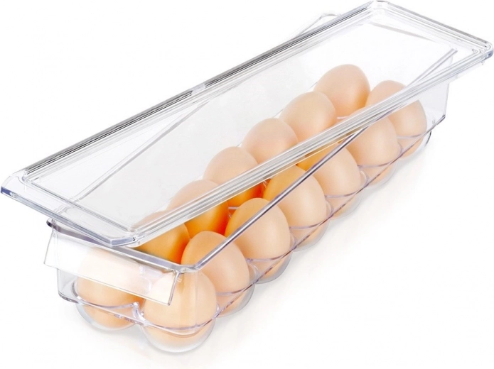 Ta trpežna in večkrat uporabna škatla za jajca je zasnovana za varno in higiensko shranjevanje do 14 jajc v hladilniku. Prosojna izvedba zagotavlja takojšen pregled nad količino, pokrov ščiti vsebino in omogoča čisto ter organizirano okolje v hladilniku.
