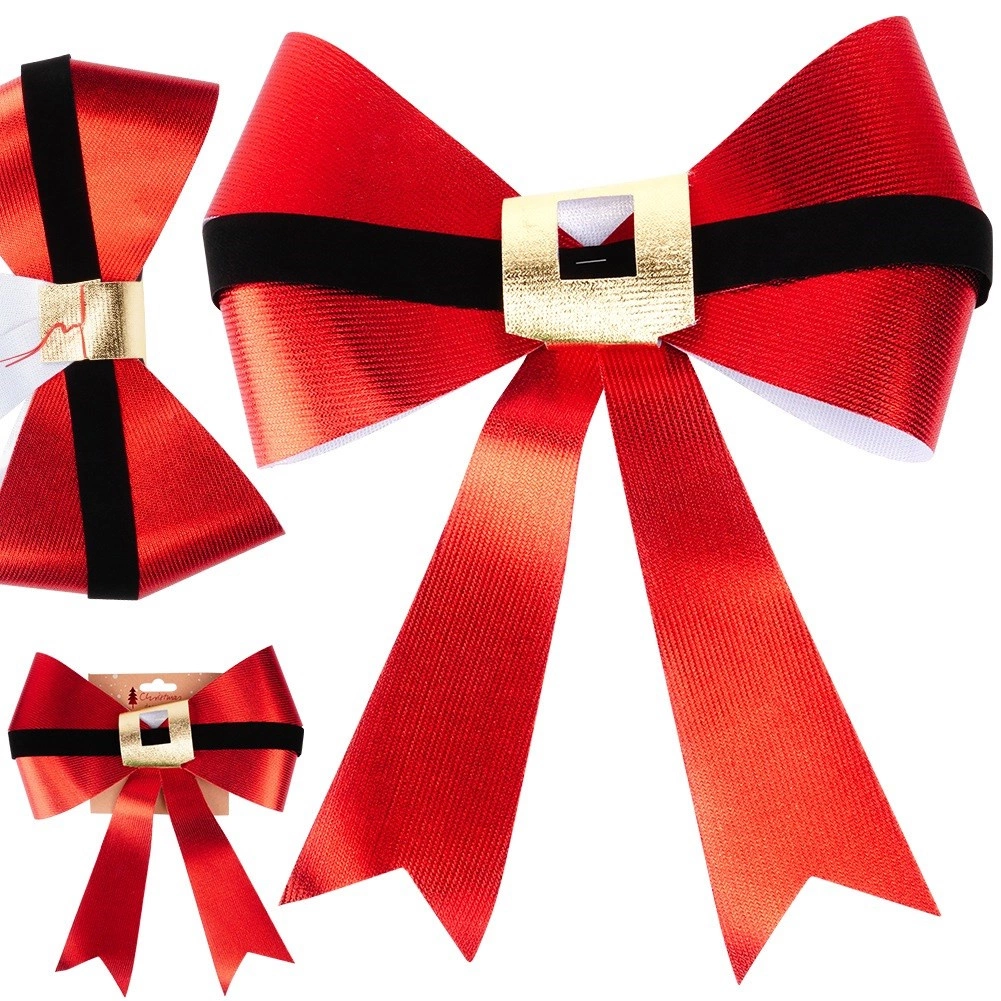 Ustvarite čarobno praznično vzdušje doma ali v službi. Ta velik božični trak v sijoči rdeči barvi s črnim “pasom” in zlatim sponkom spominja na Božičkov pas, zato takoj pritegne pozornost in poudari vsak interier ali zaščiteni zunanji prostor.
