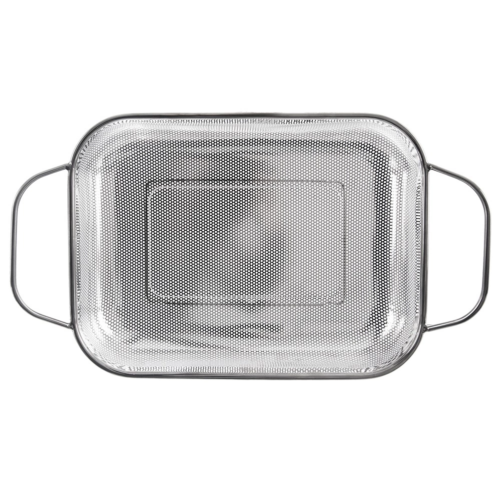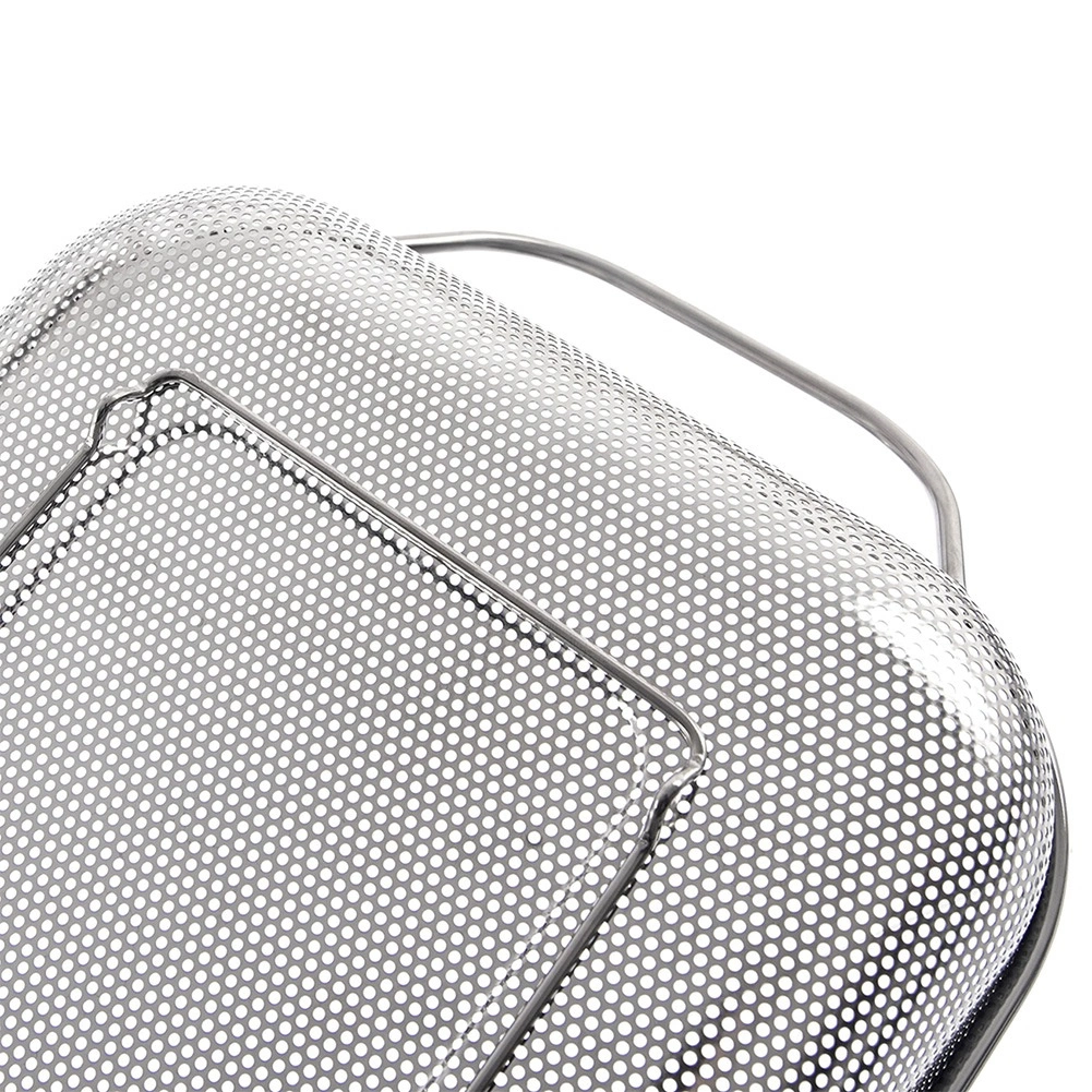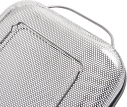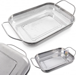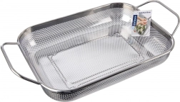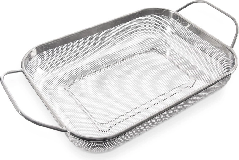 Koš služi kot cedilnik nad koritom in kot koš za žar. Perforacija prepušča toploto in dim, živila pa ne izpadajo.