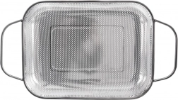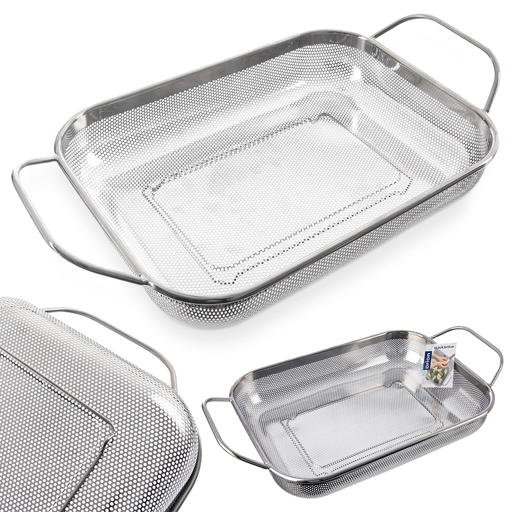 Univerzalni odkapni koš ANETT v prostorni pravokotni obliki olajša vsakodnevno pripravo jedi. Fina perforacija iz nerjavnega jekla zagotavlja hitro odtekanje vode in hkrati varno zadrži tudi manjša živila v notranjosti. Dva stranska ročaja omogočata udobno rokovanje, štiri nogice pa držijo koš stabilno nad dnom korita in na rešetki žara.