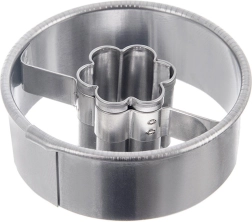 Praktičen nerjaven kalup v obliki kroga z rožastim izrezom na sredini za preprosto izdelavo izvirnih piškotov in medenjakov. Zaradi odprtine na sredini lahko piškote napolnite z marmelado ali čokolado. Vzdržljivo nerjavno jeklo, univerzalna uporaba in enostavno čiščenje v pomivalnem stroju ga delajo odličnega pomočnika pri vsakem peki.