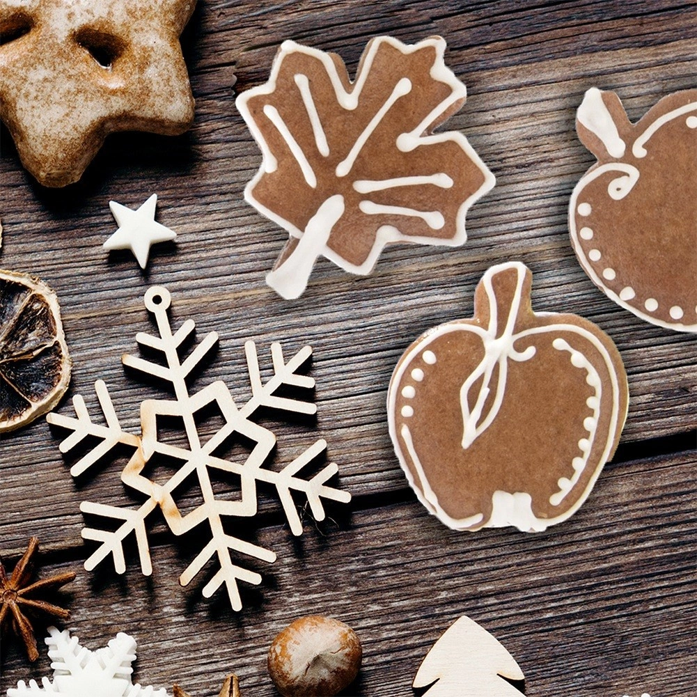 Ustvarjajte jesenske in božične motive na pecivu in sladicah – učinek posebej izstopa z belo glazuro.