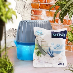 Standardni format tablete 450 g je primeren za večino absorberjev vlage z zamenljivo tableto. Menjava je hitra, čista in brez orodja.