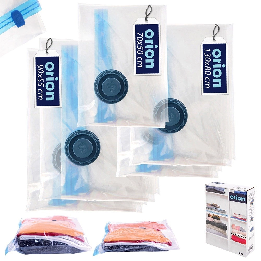 Komplet vakuumskih vrečk je pametna rešitev za vsakodnevno organizacijo doma in na poti. Preprosto vložite stvari, zaprite dvojni zadrg in s pomočjo sesalnika ali ročne črpalke izsesajte zrak skozi ventil. Vsebina se stisne, ostane pregledno shranjena in zaščitena pred nečistočami.