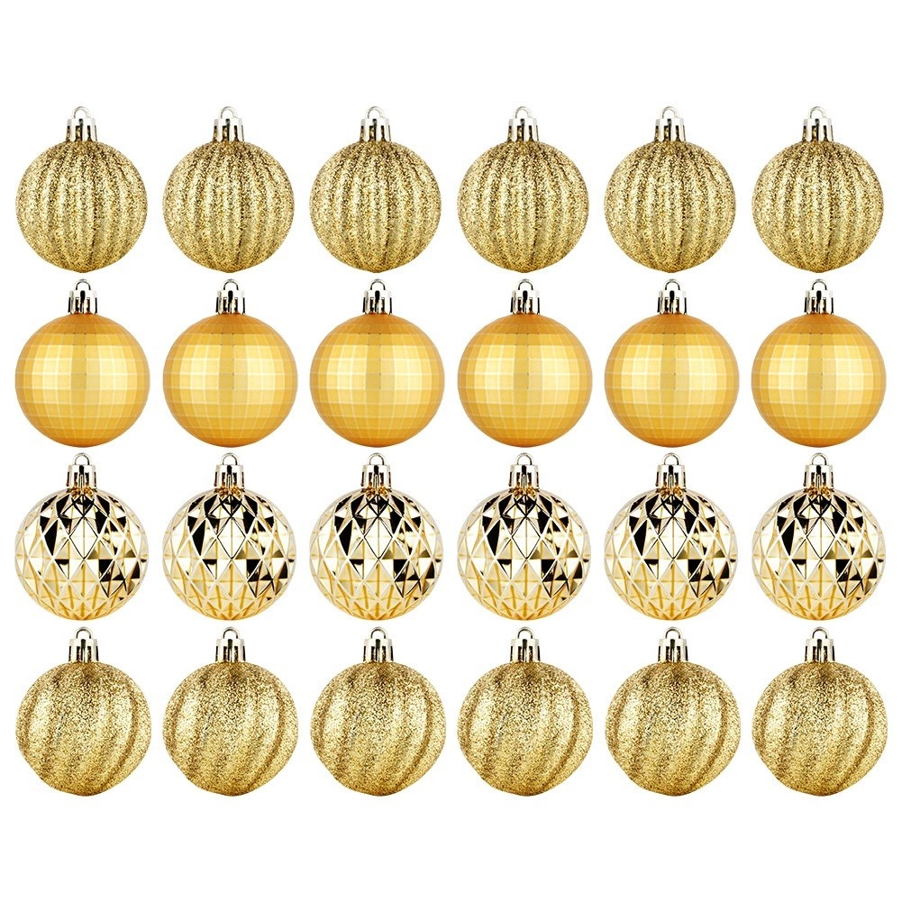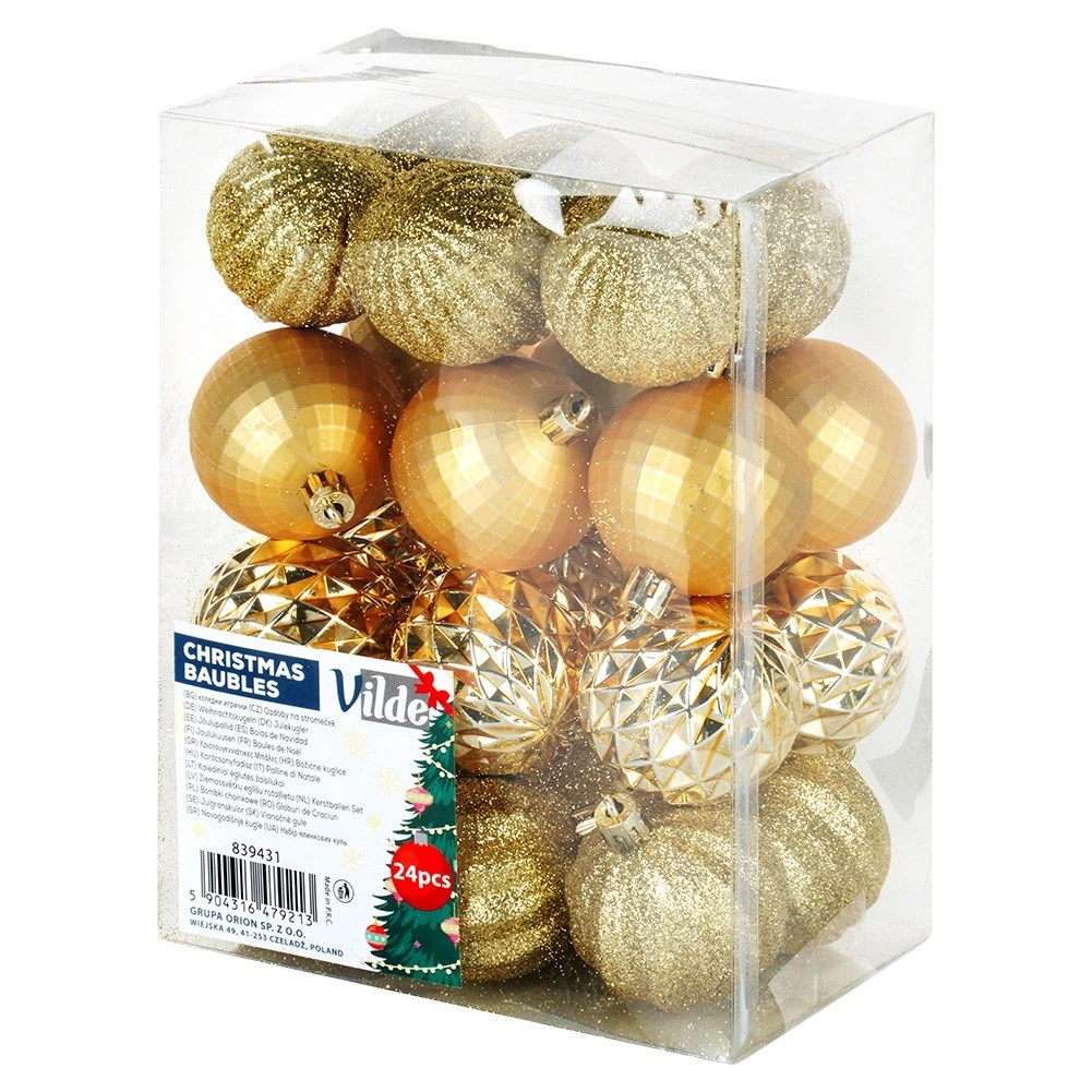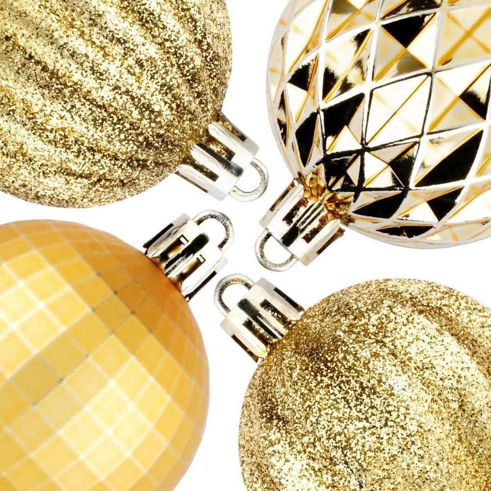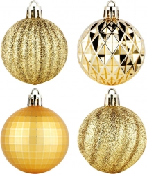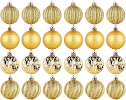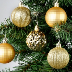 Ustvarite čarobno praznično vzdušje s kompletom zlatih krogel, ki vašemu drevescu dodajo razkošen lesk in globino. Raznolike teksture in površine zagotavljajo vizualno pester in harmoničen okras, ki izstopa na vsaki veji.