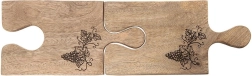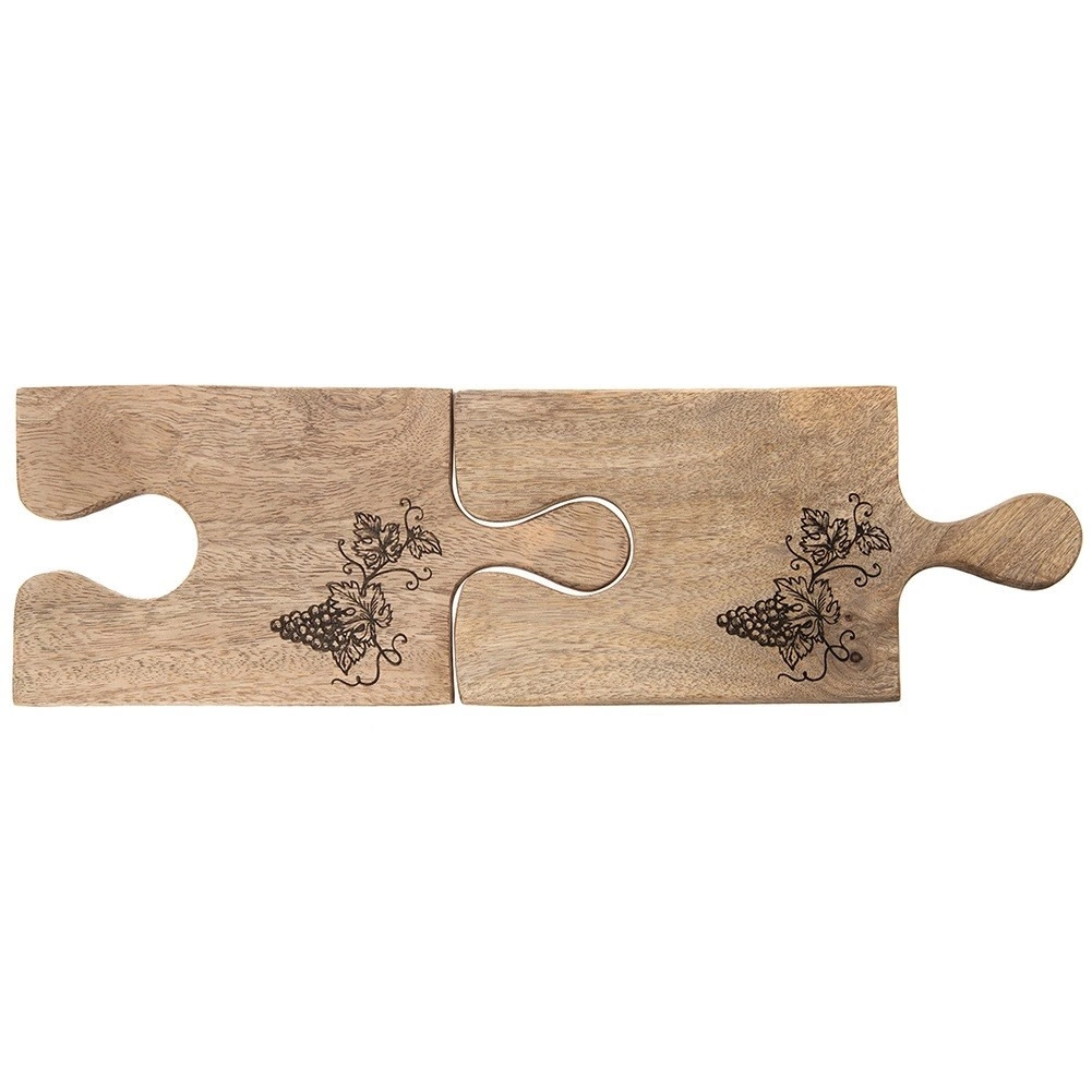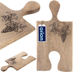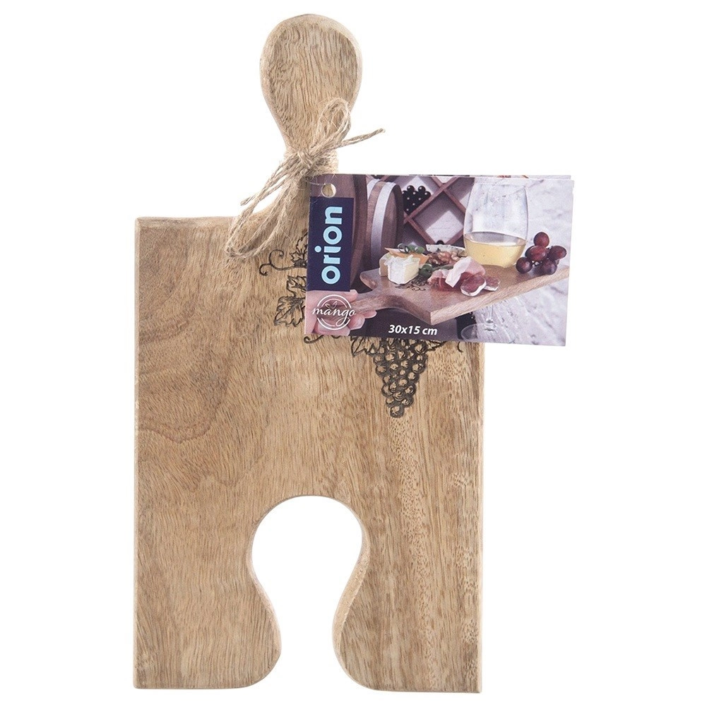 Stilna lesena deska iz mangovega lesa z izvirno obliko puzzle je idealna za rezanje in serviranje sirov, mesnin in prigrizkov. Odporen mangov les, udoben ročaj in dekorativni motiv grozdja jo naredijo za praktičen in eleganten dodatek vsaki kuhinji in za degustacije.