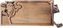 Vgravirana bikova glava deski doda izviren značaj, medtem ko močna vrvica omogoča enostavno obešanje in prihranek prostora.