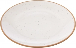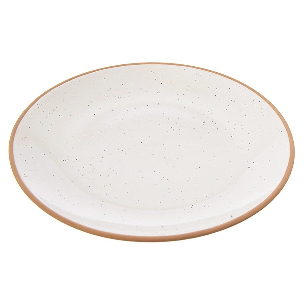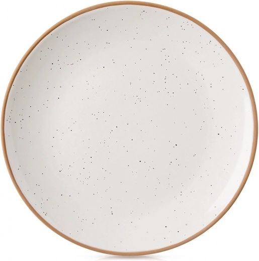 Eleganten keramični krožnik s premerom 20 cm izstopa s kropeno glazuro in kontrastnim, naravno oblikovanim robom. Zaradi univerzalne oblike in gladke površine je odličen za vsakodnevno uporabo in slovesno pogostitev. Minimalističen videz zlahka kombinirate z drugimi kosi namizne posode.