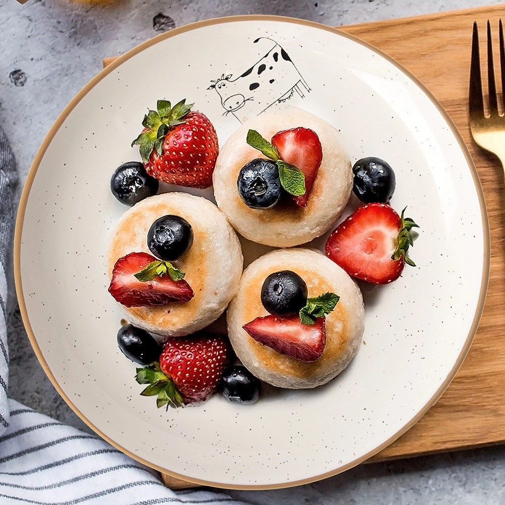 Spremenite vsako serviranje v mali praznik. Desertni krožnik s premerom 20 cm iz kakovostne keramike v modni bež barvi s posipanim vzorcem in naravnim kamnitim robom deluje elegantno in hkrati domačno. Reliefni motiv kravice krožniku doda izviren pridih in pritegne pozornost na prvi pogled.