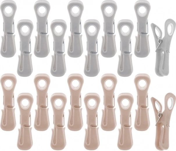 Komplet univerzalnih ščipalk za perilo je zasnovan za vsakodnevno uporabo na sušilcu, vrvi in obešalniku. Zaradi kakovostne plastike in kovinske vzmeti zagotavljajo močan prijem brez poškodovanja tkanin, kar boste cenili pri sušenju majic, puloverjev in nežnega perila.