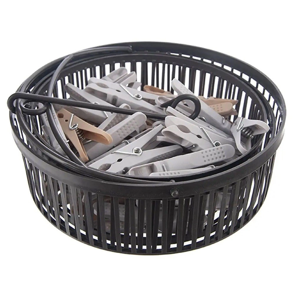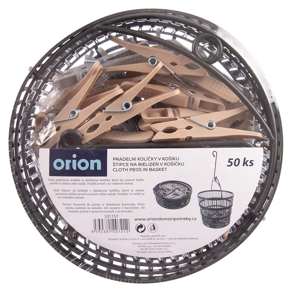 Komplet vsebuje 50 trpežnih zaponk v praktični košari, ki jo lahko obesite na sušilnik ali vrv. Odprta, prezračena zasnova košare omogoča odtekanje vode in hitro sušenje, tako da so zaponke vedno pri roki. Zaponke v sivi in bež barvi so izdelane iz kakovostne plastike s kovinsko vzmetjo za dolgo življenjsko dobo.