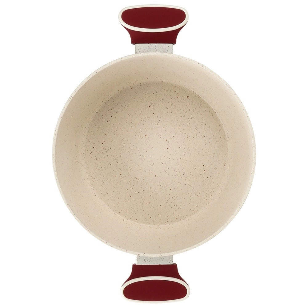 Slogovit kremni lonec z nežno pikastim videzom združuje hitro segrevanje in dolgo življenjsko dobo. Trislojna granitna neprijemljiva površinska obdelava brez PFOA omogoča zdravo kuhanje z malo maščobe in enostavno čiščenje. Jekleni indukcijski vložek v dnu enakomerno porazdeli toploto za varčno in učinkovito kuhanje.
