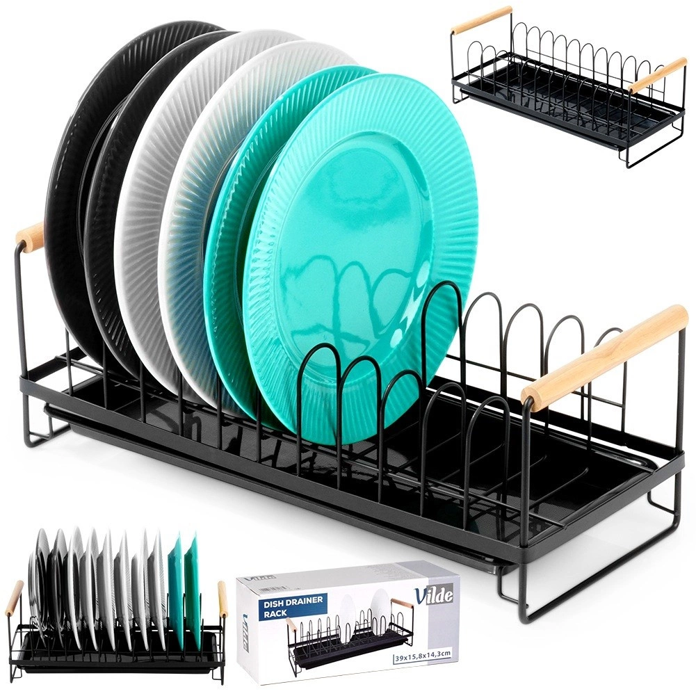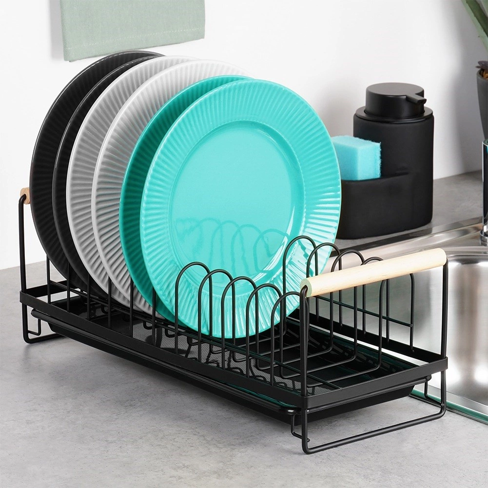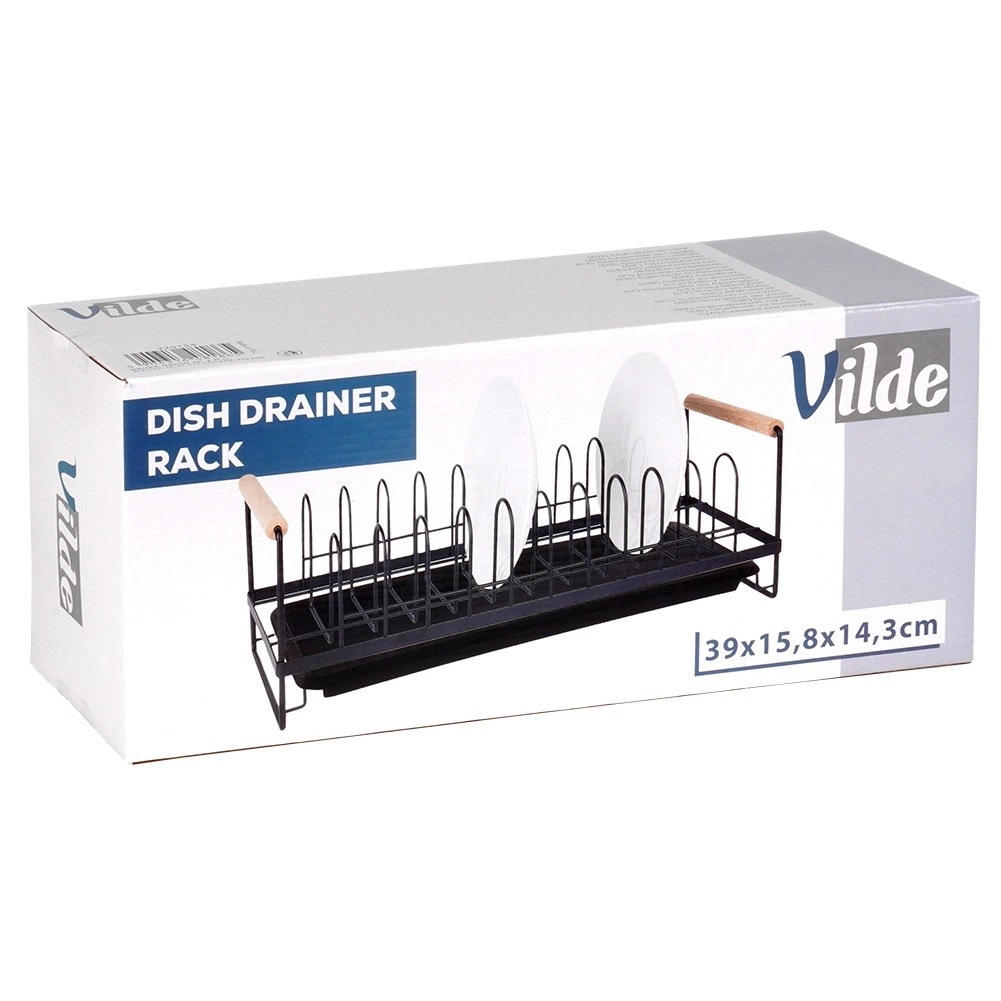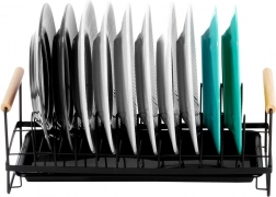 Eleganten in funkcionalen odcejevalnik za posodo, ki učinkovito suši krožnike in hkrati ščiti delovni pult pred vlago. Zaradi kompaktnih mer 39 × 16 × 14,5 cm se zlahka prilega ob pomivalno korito in zagotavlja red po vsakem pomivanju.