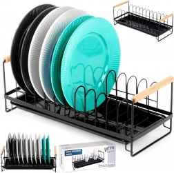Masiven kovinski okvir v mat črni barvi zagotavlja stabilnost in dolgo življenjsko dobo, medtem ko odstranljiva odcejevalna posoda olajša čiščenje in ohranja kuhinjske površine suhe. Bambusovi ročaji olajšajo rokovanje in izdelku dodajo naravni poudarek.