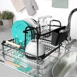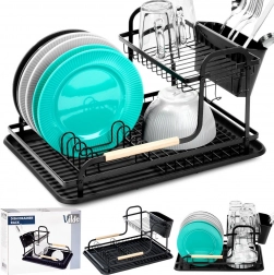 Spodnji nivo sprejme do 10 krožnikov, zgornji in spodnji del pa sta idealna za skodelice, kozarce in sklede. Sušenje je hitrejše, prostor ob pomivalnem koritu pa preglednejši.