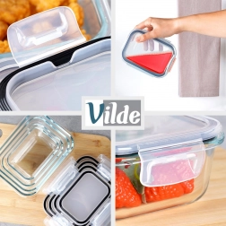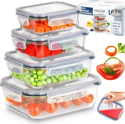 Odkrijte praktičen komplet 4 steklenih posod, ki pomagajo ohranjati red v kuhinji in svežino živil. Izdelane iz borosilikatnega stekla prenesejo visoke in nizke temperature, medtem ko pokrovi s tesnilom in štirimi sponkami zagotavljajo zanesljivo, nepropustno zapiranje. Prosojne stene omogočajo hiter pregled vsebine brez odpiranja.