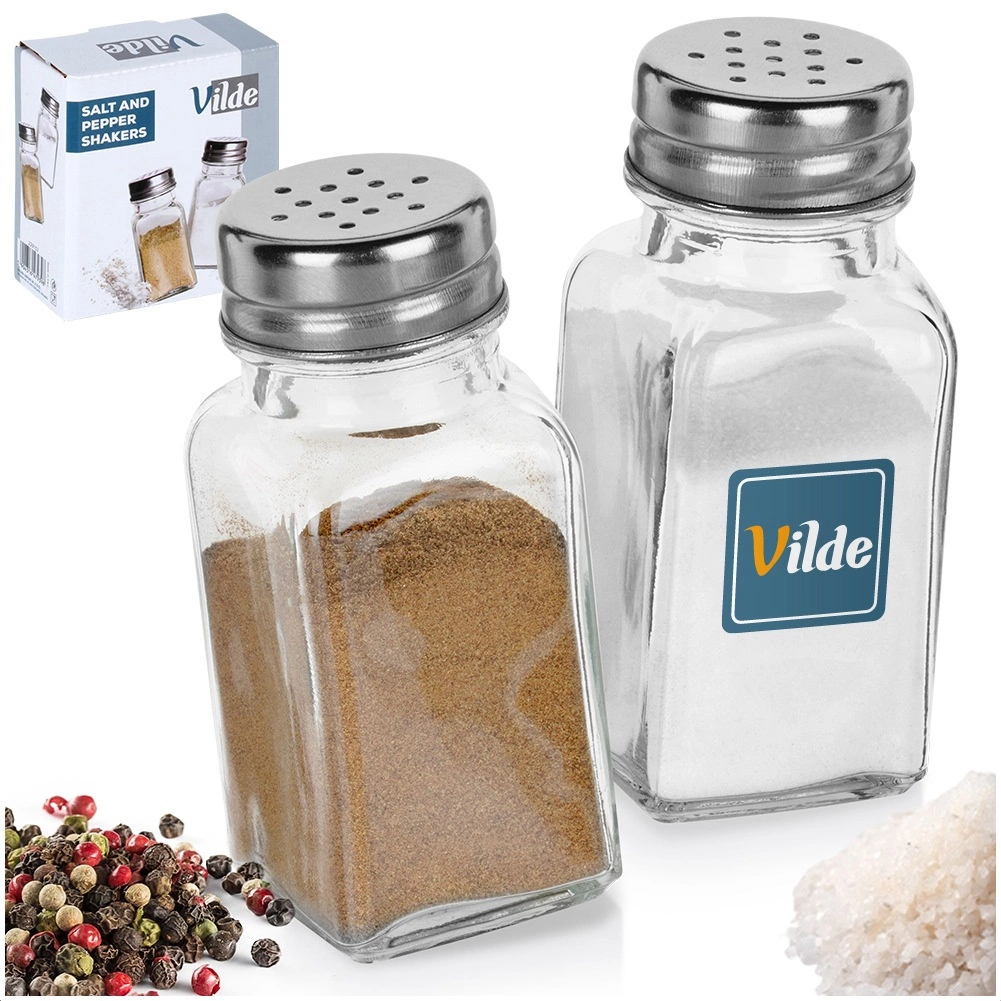 Komplet dveh elegantnih posodic iz prozornega stekla ponuja pregled nad vsebino na prvi pogled ter natančno doziranje soli in popra zahvaljujoč pokrovčkom z odprtinami. Kovinski navojni pokrovčki v srebrni barvi so trpežni in pomagajo ohraniti svežino in aromo vaših začimb.
