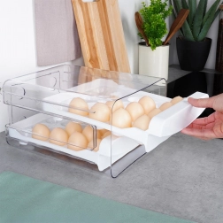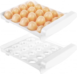 Ohranite red v hladilniku z dvonadstropnim zalogovnikom za jajca s kapaciteto 40 kosov (20 kosov na nivo). Prozoren pokrov in bele vložke s posebej oblikovanimi ležišči zagotavljajo stabilnost jajc brez kotaljenja. Zaradi pametne rešitve so jajca bolje zaščitena pred poškodbami in ostanejo dlje sveža.