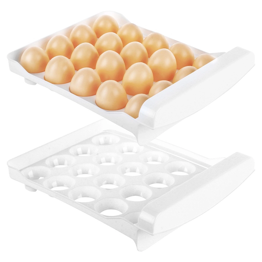 Shranite do 40 jajc na dveh nivojih in prihranite prostor v hladilniku. Vsako nadstropje sprejme 20 kosov v posameznih ležiščih za maksimalno zaščito.