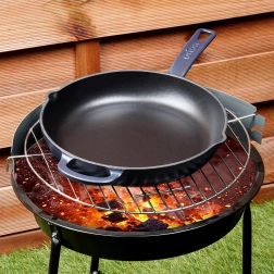 Težka litina odlično akumulira in enakomerno oddaja toploto za popolno zapečeno meso, zelenjavo in krompir. Idealna za hitro praženje in počasno dušenje.
