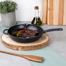 Ta robustna litinasta ponev je idealna za vsakodnevno kuhanje – od hitrega praženja zelenjave in sočnih steakov do zapekanja v pečici. Črna emajlirana notranjost olajša pripravo in serviranje ter hkrati omogoča preprosto čiščenje. Modra zunanjost doda vaši kuhinji stil, trpežna litina pa zagotavlja stabilne rezultate.