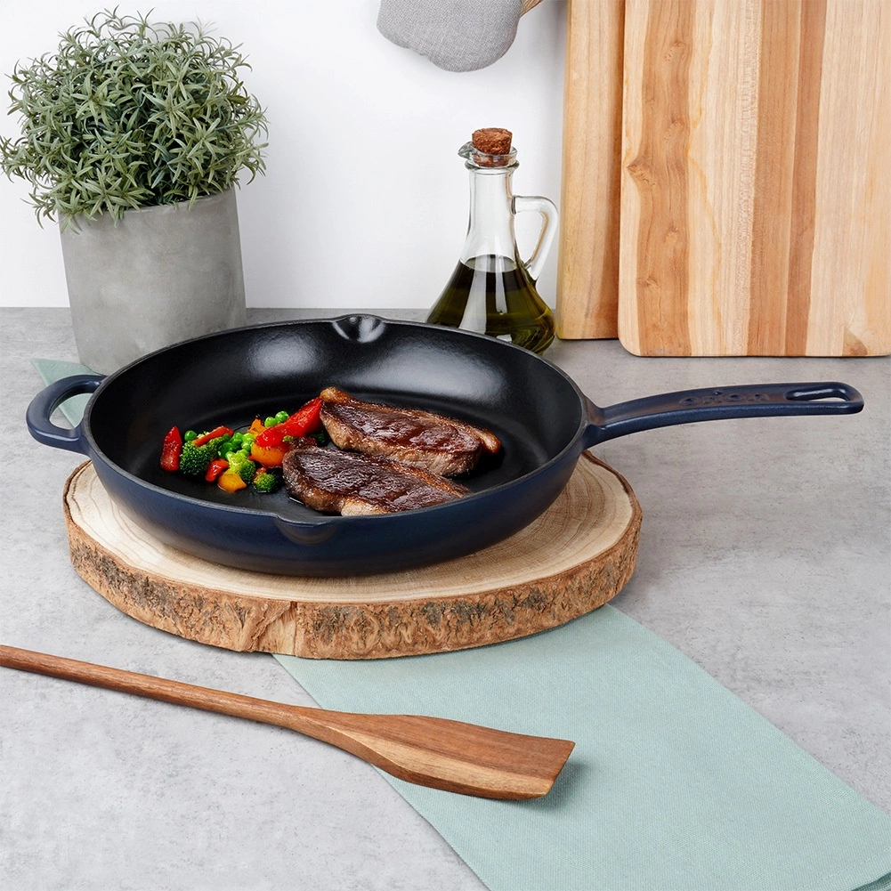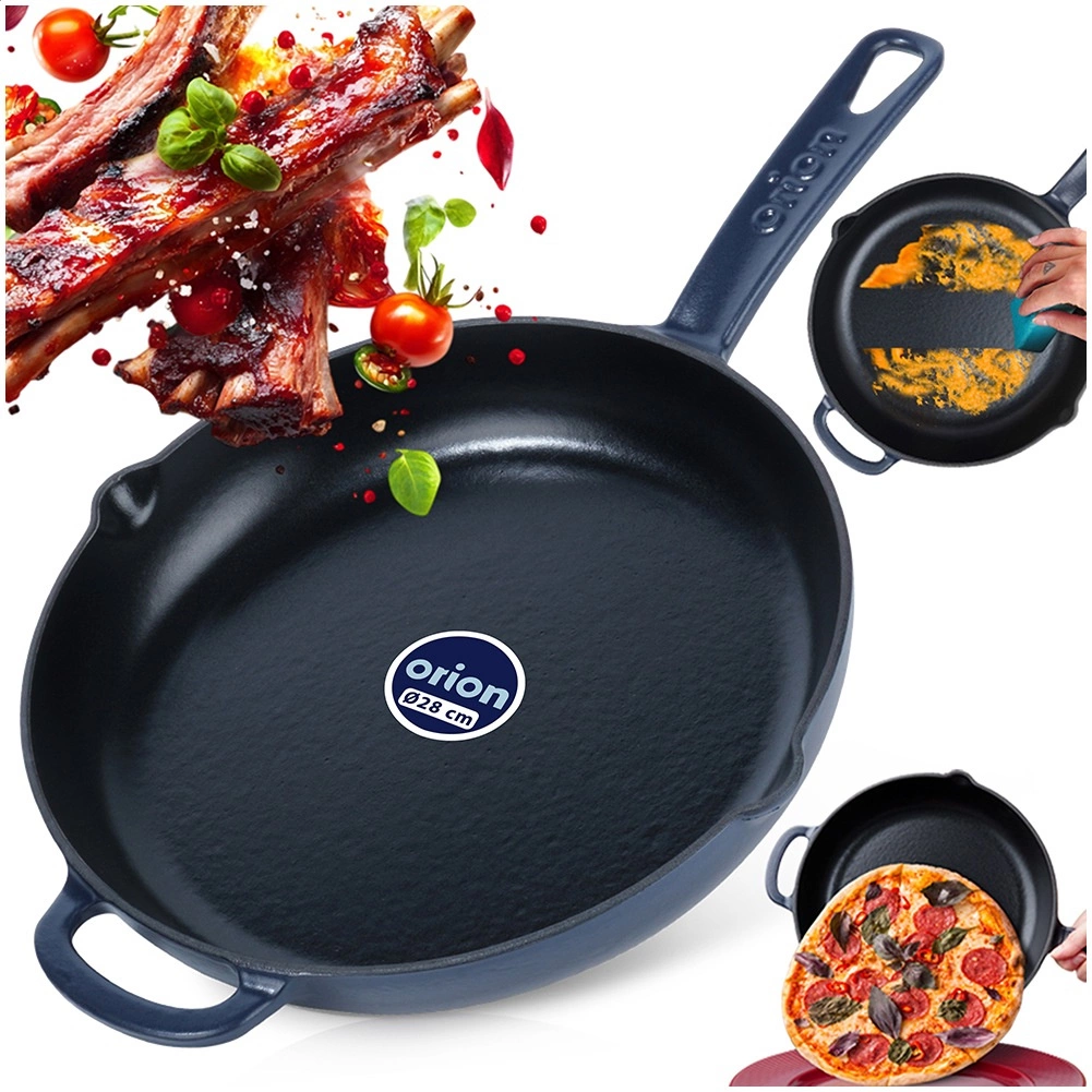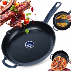Ta univerzalna litoželezna ponev je odlična za cvrtje, praženje, dušenje in peko. Trpežna konstrukcija in emajlirana površina olajšata pripravo jedi in naknadno čiščenje. Ponev dolgo ohranja visoko temperaturo, kar je popolno za steak, zelenjavo, krompir in pico. Primerna za kuhinjo, žar in odprt ogenj.