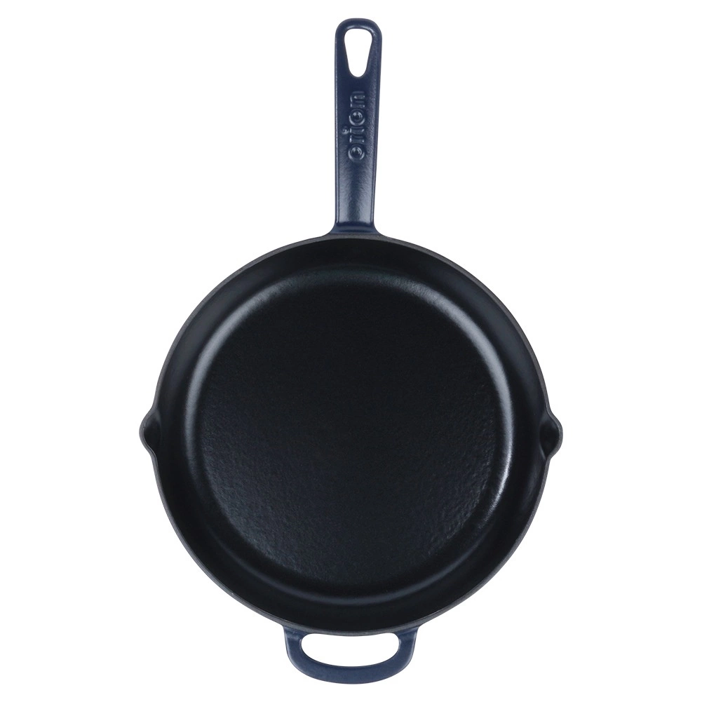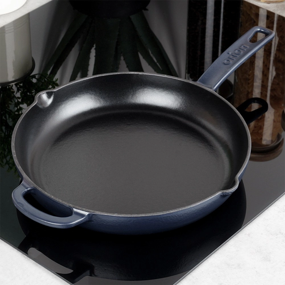 Črna notranja emajlirana plast olajša udobno cvrtje in preprosto čiščenje. Zunanja modra glazura doda slog in odpornost.