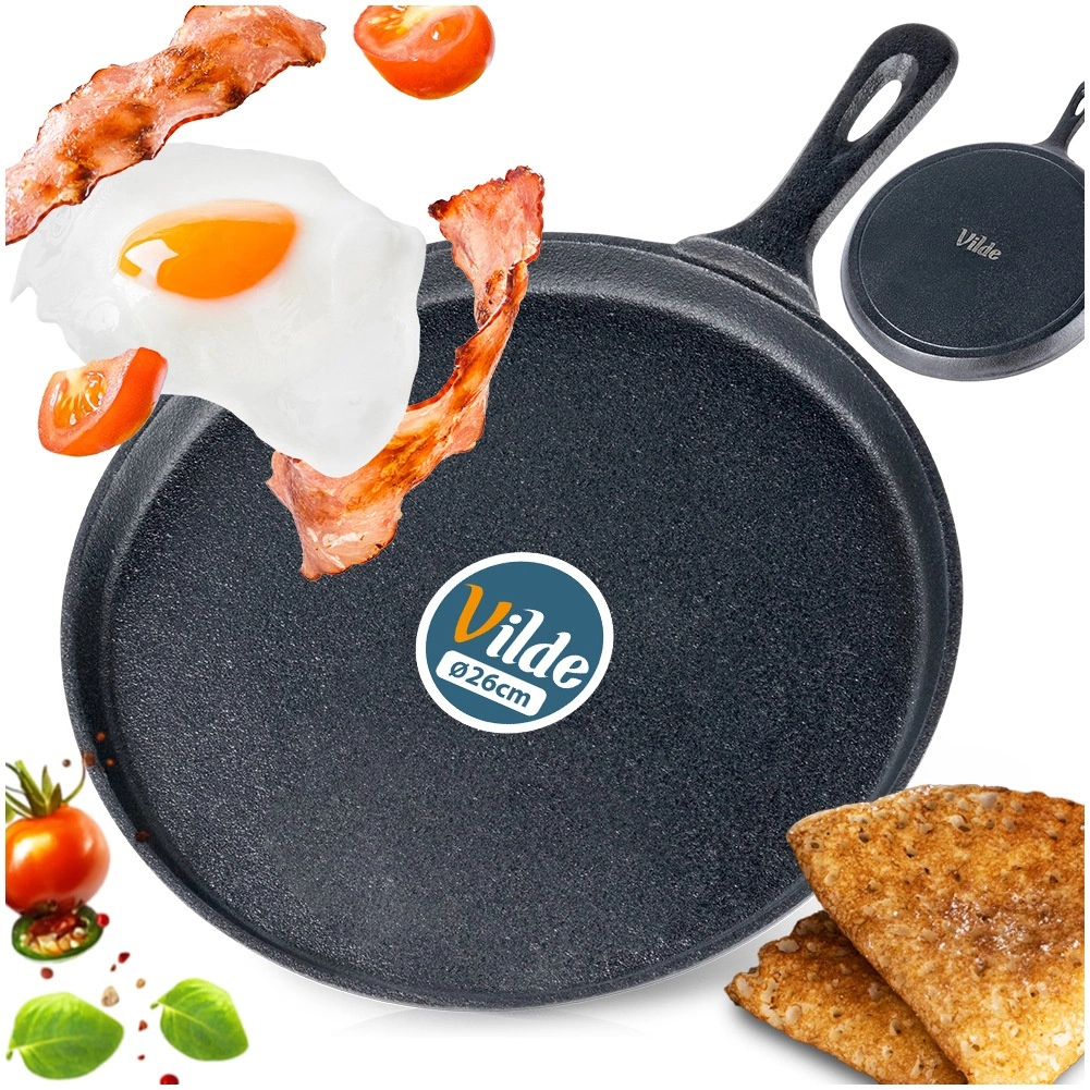 Litoželezna palačinkarska ponev CAST LINE s premerom 26 cm je robustna in vsestranska izbira za vsako kuhinjo. Zahvaljujoč masivnemu litoželeznemu telesu odlično akumulira in enakomerno porazdeljuje toploto, zato pripravite popolno zlatorjave palačinke, tortilje, polpetke in pico. Primerna je za plin, elektriko, steklokeramiko, halogen, indukcijo in pečico ter zmore tudi žar ali odprt ogenj. Z ustrezno nego (redno oljenje/seasoning) dobite dolgoživo posodo brez kemičnih premazov.