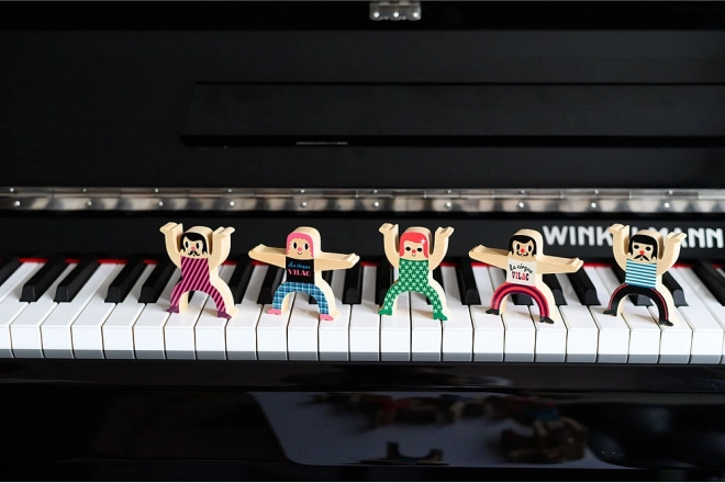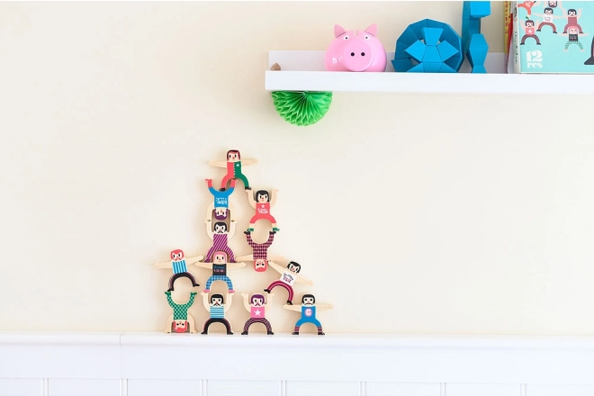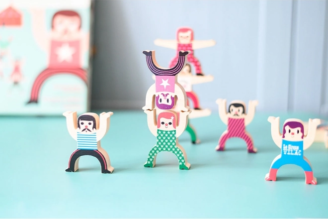 Zgradite svoj stolp akrobatov in preizkusite svojo spretnost ter domišljijo. Lesene figurice v živahnih barvah lahko zlagate v številne stabilne in drzne položaje, zaradi česar je ta igrača idealna izbira za skupno igranje in učenje ravnotežja.