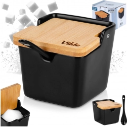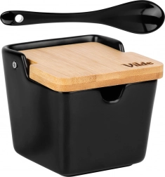 Ta stilska posodica za sladkor v minimalističnem dizajnu je popoln dodatek vsaki kuhinji ali jedilnici. Mat črna keramika v kombinaciji z naravnim bambusom deluje elegantno, hkrati pa je zelo praktična za vsakodnevno uporabo. Zahvaljujoč preklopnemu pokrovu in izrezu za žličko imate sladkor ali sol vedno pri roki in hkrati zaščitene.