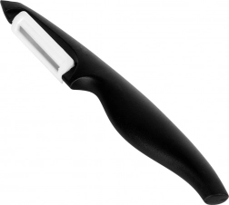 Keramično rezilo dolgoročno ohranja ostrino, ne rjavi in je higiensko. Lupilec je primeren za desničarje in levičarje, zato ga lahko brez težav uporablja vsak član gospodinjstva. Kompaktne mere poenostavijo shranjevanje in rokovanje.