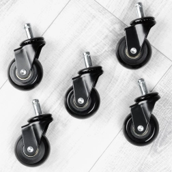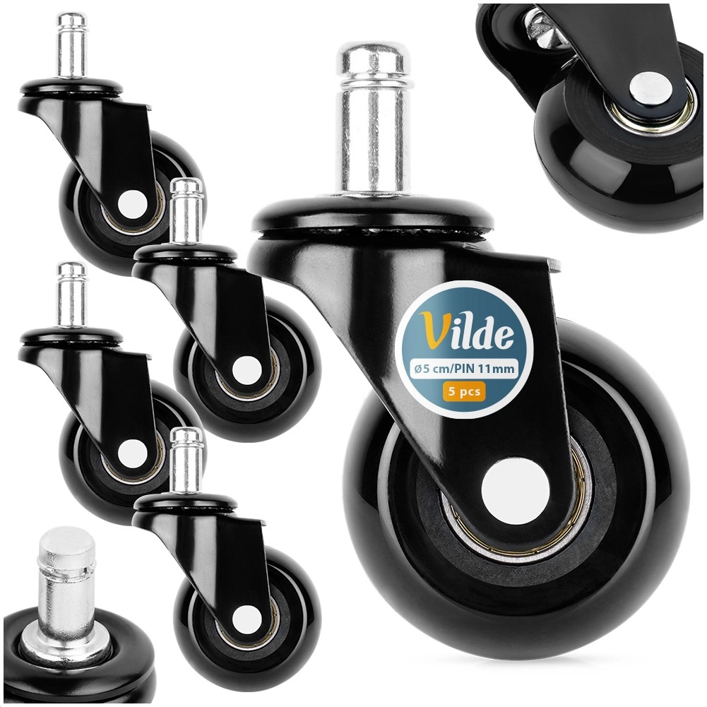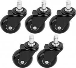 Montaža je opravilo trenutka — preprosto izvlecite stara kolesca in vstavite nova v petkrako osnovo. Standardni zatič 11 mm zagotavlja široko združljivost z večino pisarniških stolov (ni primerno za stole IKEA). Idealno za les, laminat, keramiko in vinil.