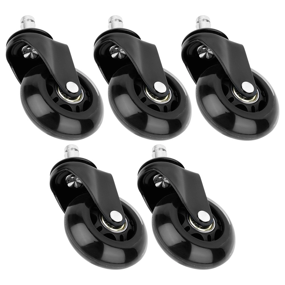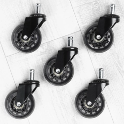Nadgradite svoj pisarniški stol s kompletom 5 gumiranih kolesc, ki zagotavljajo tiho in tekoče drsenje po vseh trdih tleh. Zaradi vzdržljivega materiala so kolesca odporna proti obrabi in prijazna do površin, zato vam ni treba skrbeti za praske na tleh v pisarni ali doma.