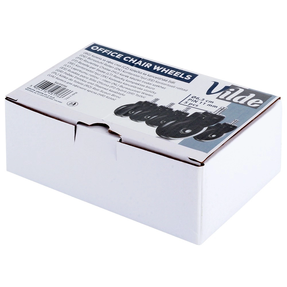 Standardni premer kolesca 63 mm in zatič 11 mm zagotavljata široko združljivost z večino pisarniških stolov (razen modelov IKEA). Namestitev je hitra – brez orodja, le izvlečete stara kolesca in vstavite nova.