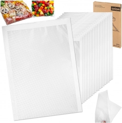 Vrečke so iz trpejne najlonske folije, primerne za temperature od −20 °C do +110 °C – idealne za zamrzovanje, mariniranje in sous‑vide. Uporabljate jih lahko varčno večkrat, kar prihrani denar in varuje okolje. Združljive z večino domačih vakuumirnih naprav.