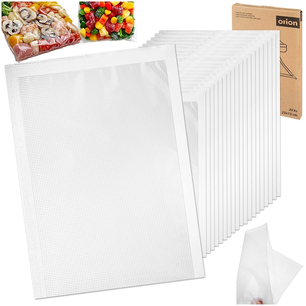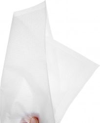 Ohranite živila do 5× dlje sveža z zanesljivimi vakuumskimi vrečkami. Ena stran je gladka, druga strukturirana (reliefna) za hitro in enakomerno izsesavanje zraka ter popolno tesnjenje. Prozorna izvedba olajša nadzor nad vsebino in organizacijo zalog v shrambi in zamrzovalniku.